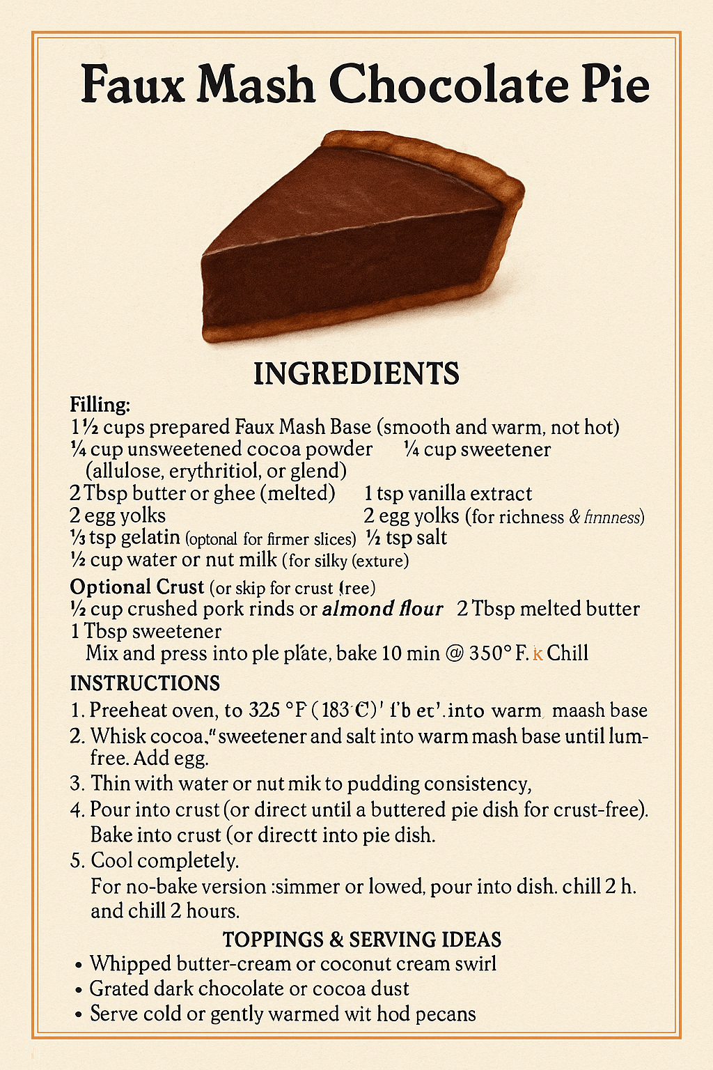 This versatile base transforms ordinary ingredients like eggs, cheese, and seasonings into real-food miracles — always low-carb, grain-free, and 100 % flour-free. Whether you fry it, bake it, or chill it, the Faux Mashed Base proves that comfort food can be both inventive and nourishing.