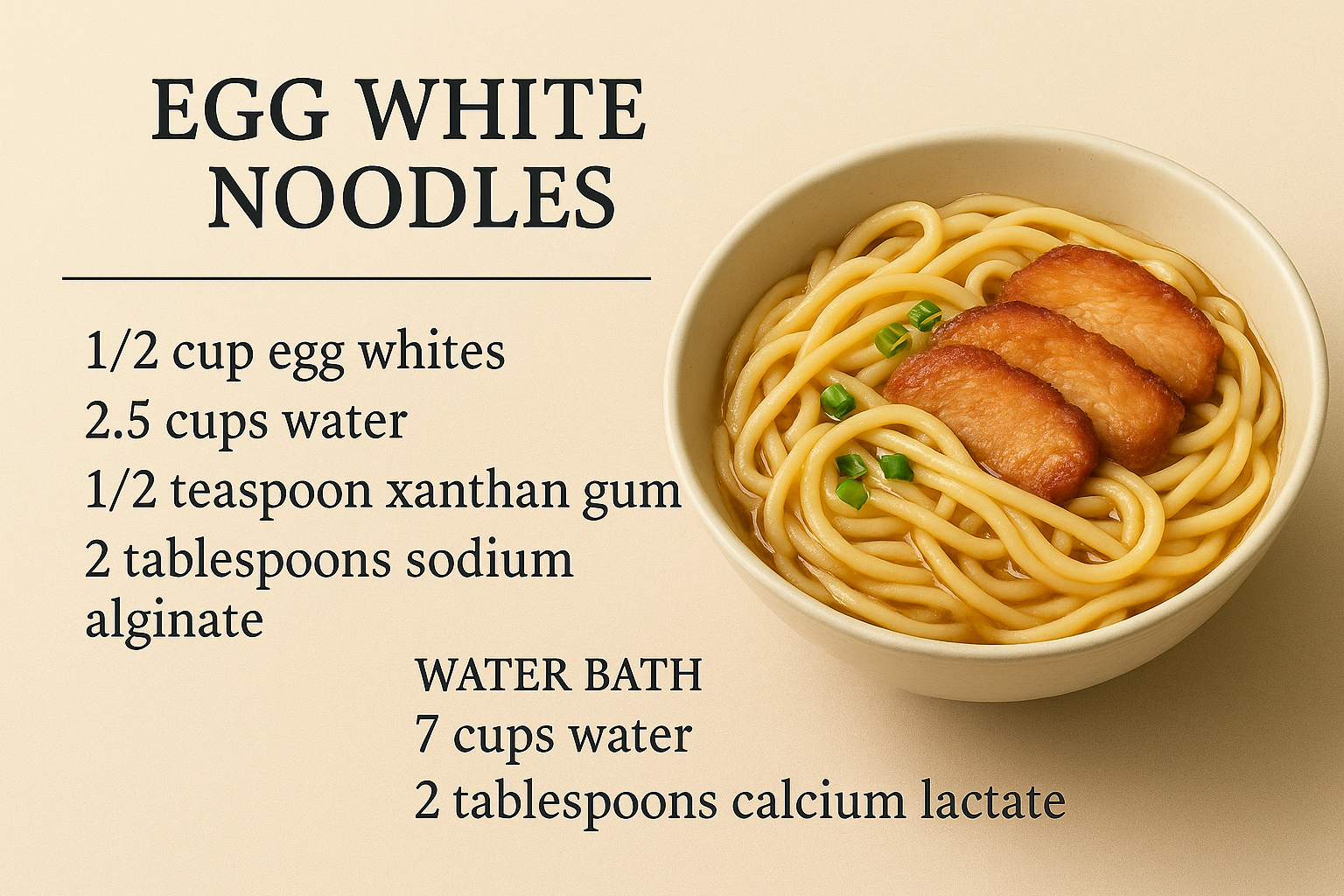 Can be made from our mash base —but there are options, too. Crafted entirely from egg whites using spherification.